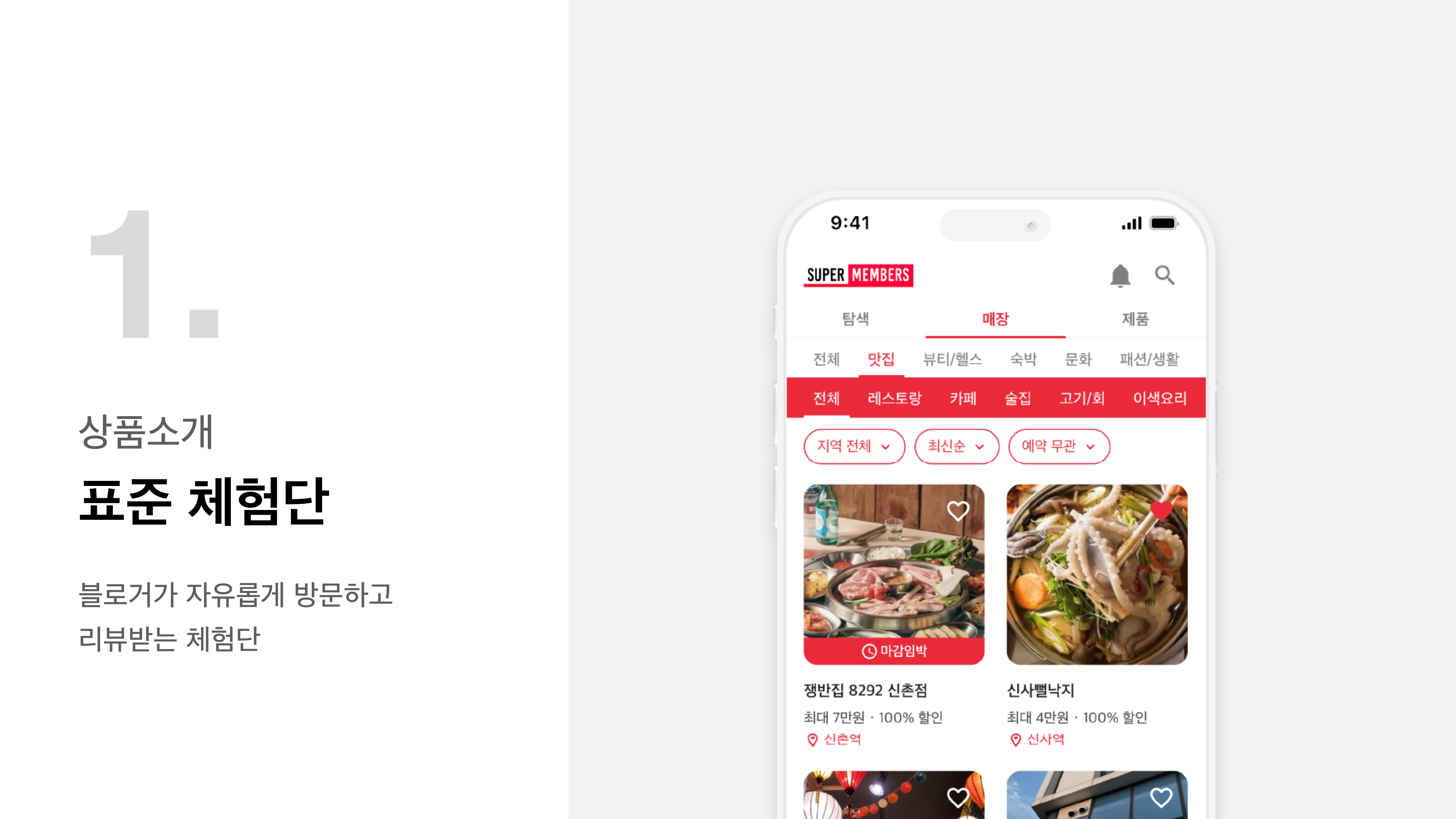 블로거가 자유롭게 방문하고 리뷰받는 체험단. 매장, 맛집, 뷰티, 숙박, 문화, 패션 등 다양한 카테고리를 지원합니다.